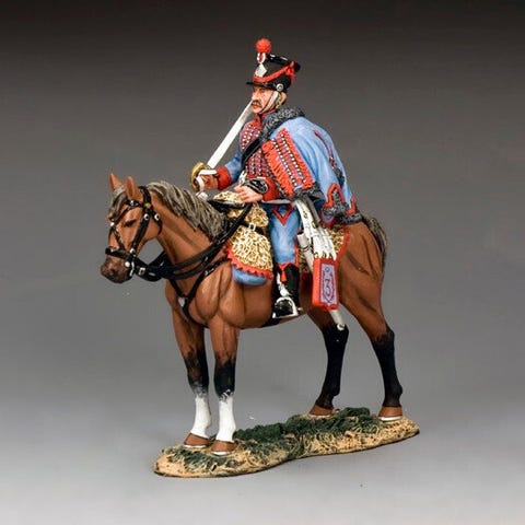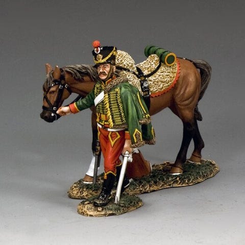 To siddende Hussars, der diskuterer dagens begivenheder... Dette sæt inkluderer stolen og bordet.