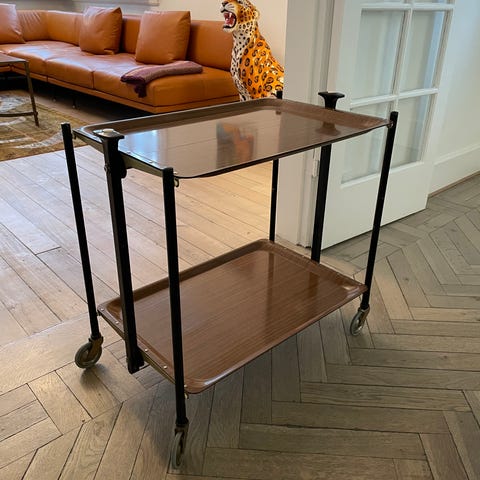 Pragtfuld vintage serveringsvogn / drikketrolley, ca. 1950–1960, formodentlig tysk fremstillet.[vinterior]