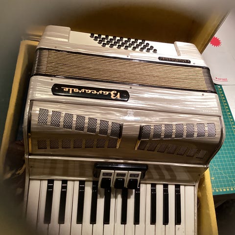 Det er en let harmonika til damer. Den har sin originale æske meget pænt. Prisen for forsendelse vil være lidt højere, fordi jeg skal lave en stærk pakke.