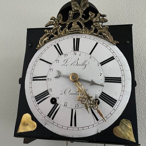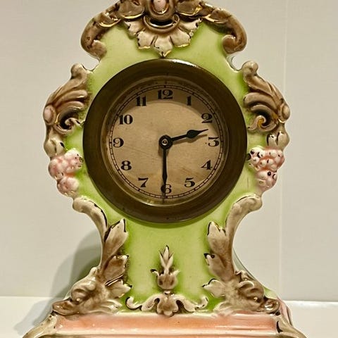 Fransk dekoreret keramisk lille vakkelåg ur i antik Louis XVI-stil fra 1970’erne til 1980’erne, med guldfarvet rokokomønster i metal, kvarturbaseret mekanisme, tavs, 47 × 17 × 11 cm, 2 kg, underskrevet Rotondo, god brugt stand med mindre tegn, i funktion. Klik på den blå "gå til varen" knap, for at købe eller byde på denne vare. Den samlede pris vil blive vist inden du afgiver dit bud.