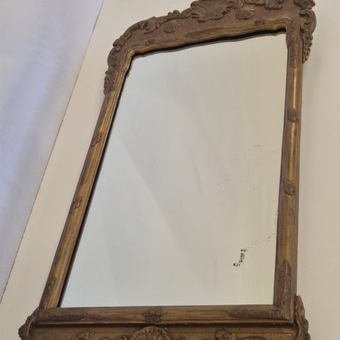 Stor buet vægspiegel i messing med seks kroge og en øverste hylle som også fungerer som knage, oprindeligt fra Frankrig, produceret i 1940’erne, dimensioner 62 × 42 × 23 cm, i god stand med mindre ælde og pletter. Klik på den blå "gå til varen" knap, for at købe eller byde på denne vare. Den samlede pris vil blive vist inden du afgiver dit bud.