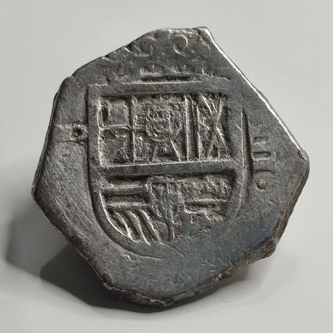 Sølv 4 reales mønt fra Toledo, præget under Filip IIIs regering (1598–1621), vægt 13,71 g, Spanien, conservationsstatus uden certifikat. Klik på den blå "gå til varen" knap, for at købe eller byde på denne vare. Den samlede pris vil blive vist inden du afgiver dit bud.