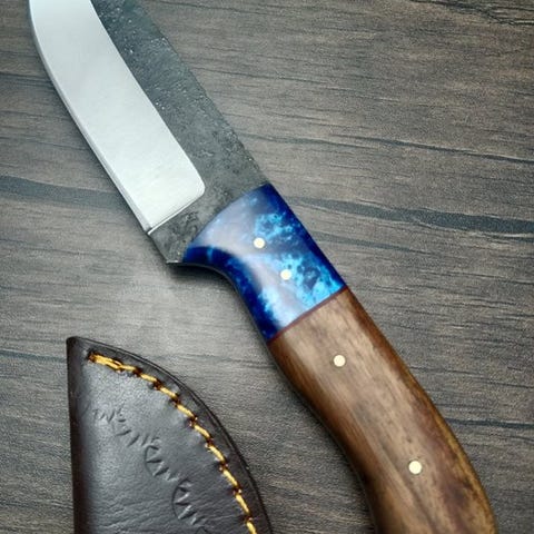 Kulstofstål bordknive, dette er et håndværk udført af højtuddannede og dygtige knivmagere. Strengt håndlavet for at sikre, at disse professionelle knive har tilstrækkelig ydeevne. Disse knive er fra Obsidian, og mærkenavnet gør kun professionelle køkkenknive. Dette duo af knive er meget fint lavet med præcision og klasse. Modellerne er meget professionelt formet, smukt designet og skåret meget fint. Knivene er håndlavede med stil og klasse. Håndtagene er lavet af fint udvalgt burl-træ. Med læderskede.