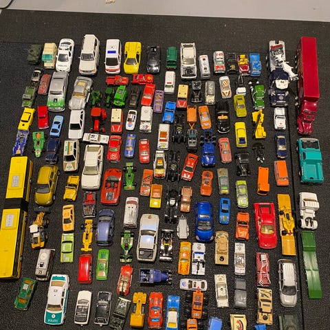 Blandet, Blandede legetøjsbiler, motorcykler mv. sælges samlet. SOS-stationen i mindre god stand. Der kan være lidt småskader på enkelte af bilerne mv.