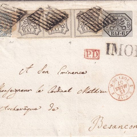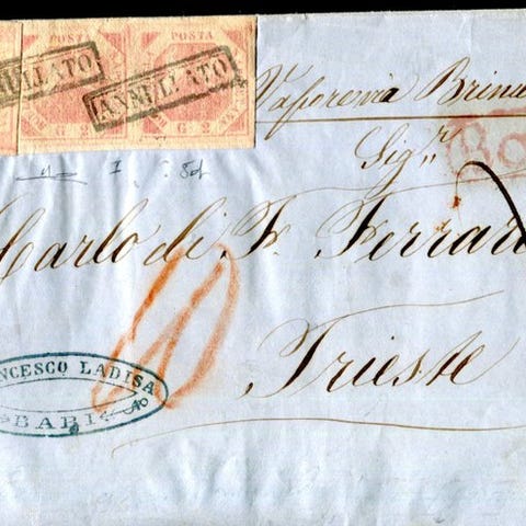 Levet brev med stor posthistorisk og italiensk historisk interesse.
