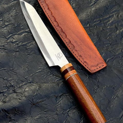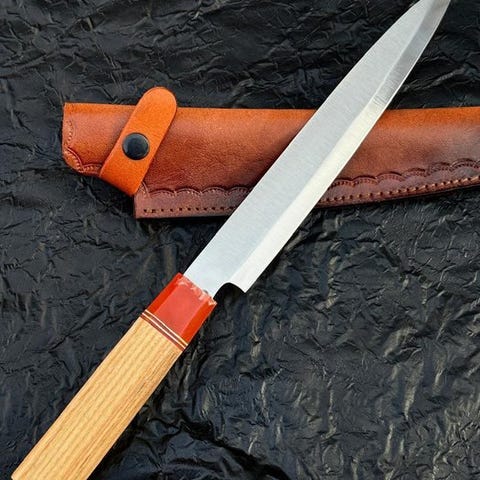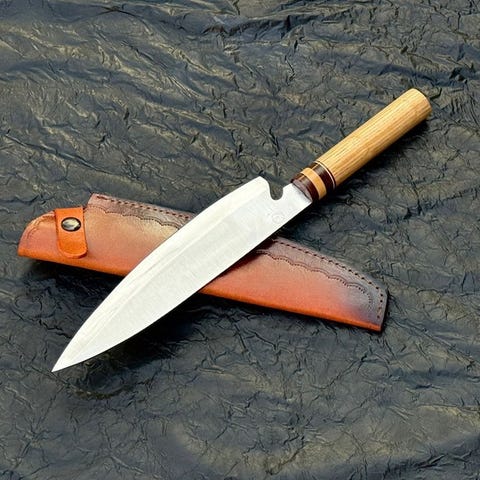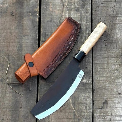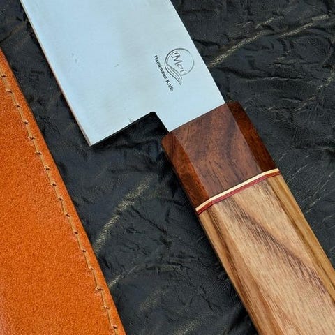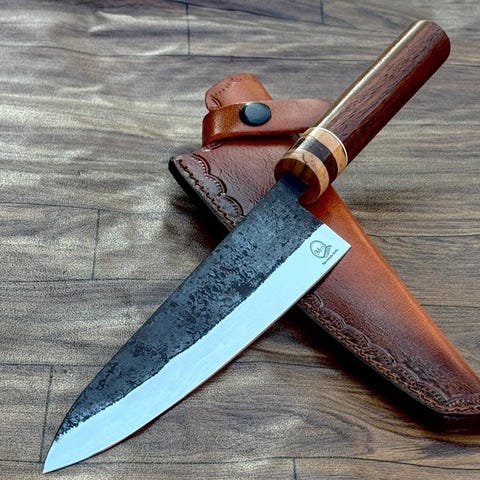 Lædercover inkluderet – et håndsyet, beskyttende hylster, der beskytter bladet og tilføjer et luksuriøst præg, hvilket gør det til en ideel gave til kulinariske entusiaster,