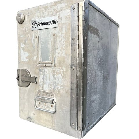 Egret Aviation galley container airline cart flightcase af aluminium, ny og ubrugt, produceret i Kina i 2020'erne, mål: 29 cm høj, 28 cm bred, 41 cm dyb, vægt 5 kg, med to blå altas skuffer. Klik på den blå "gå til varen" knap, for at købe eller byde på denne vare. Den samlede pris vil blive vist inden du afgiver dit bud.