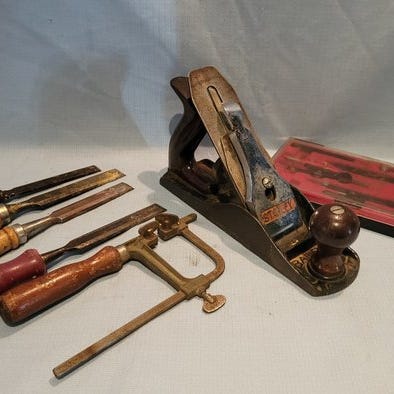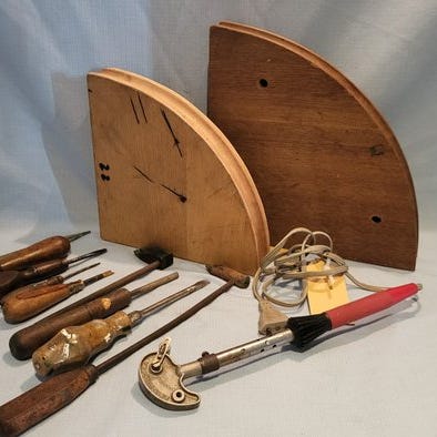 Vintage trådskærer sæt til træarbejde, lavet af jern, oprindelse Tyskland, dateret 1970–1980, i rimelig stand med kraftig brug og mulig manglende små dele, indeholder flere løse skærepinde i en lille kasse. Klik på den blå "gå til varen" knap, for at købe eller byde på denne vare. Den samlede pris vil blive vist inden du afgiver dit bud.