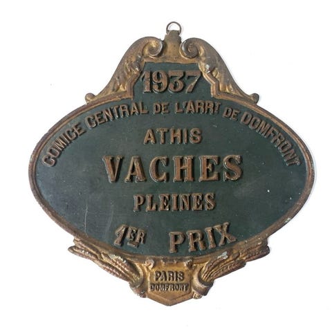 Prix de Agricole – Taureaux 1958, aluminium fra Frankrig, datoet til 1930–1940, størrelse 22 x 14 cm, originalt/officielt og i fremragende stand. Klik på den blå "gå til varen" knap, for at købe eller byde på denne vare. Den samlede pris vil blive vist inden du afgiver dit bud.