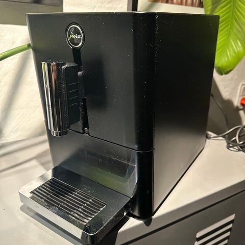 Jura C60 Piano Black espressomaskine i sort plast og metal, fremstillet i Schweiz, med professionel mælkeskummer, fremragende stand og i drift, mål 41 cm dyb, 34,5 cm høj og 28 cm bred, vægt 11 kg. Klik på den blå "gå til varen" knap, for at købe eller byde på denne vare. Den samlede pris vil blive vist inden du afgiver dit bud.