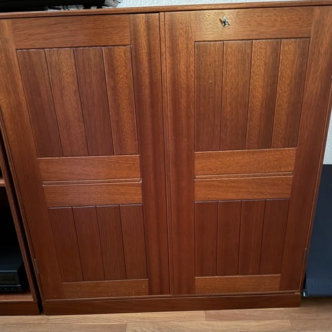 Mogens Koch, Skabsmodul i mahogni, helt som ny. Arkitekttegnet skabsmodul fra Rud Rasmussens 2007 jubilæumsserie i forbindelse med 75 året for Mogens Kochs reol- og skabsserie. Der er mærkat fra Rud Rasmussen bagpå skabet, der viser jubilæumsserien. Denne jubilæumsserie er udført i ekstra fin udgave. Mahogni er ikke længere muligt at købe fra ny, så dette er en enestående chance.