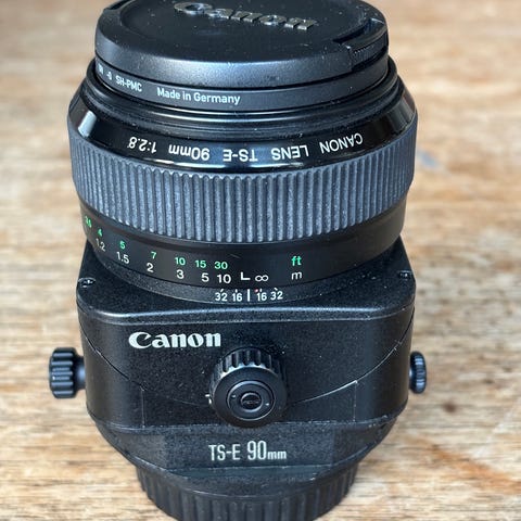 Canon TSE 45mm objektiv med tilt-shift funktion. Objektivet er designet til præcis kontrol over perspektiv og dybdeskarphed.