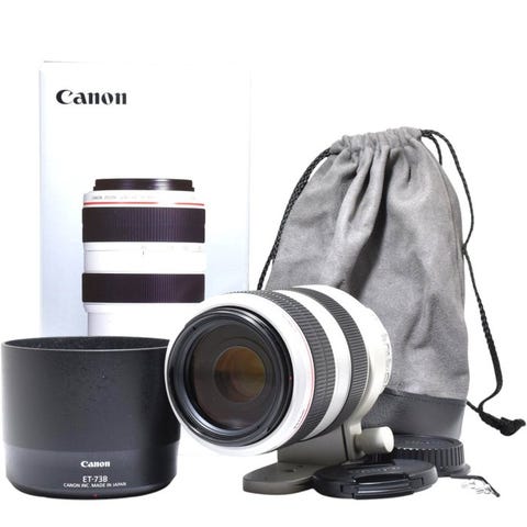 Med original emballage . Ingen mærker efter brug. Leveres med original kasse, modlysblænde, Canon-bag og beskyttelsesdæksel.