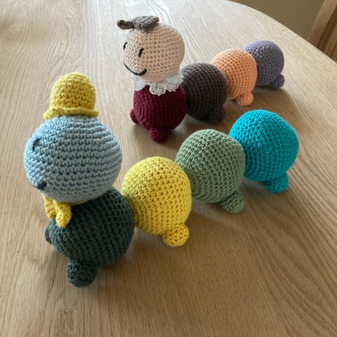 Denne hjemme hæklede bamse er lavet af acryl og uld og vat som fyld og er helt ny Den er 25 cm lang