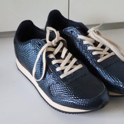 Woden sneakers i kobberfarvet læder med krokomønster. Skoene har snørebånd og en gummisål med rillemønster. Designet til kvinder, velegnet til daglig brug.ubrugte se billederne