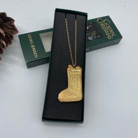 Georg Jensen Gavemærke - Julesok med Hjerter. 5 cm højt. Forgyldt messing. Flot som ophæng på juletræ. Designet af Georg Jensen Team.
