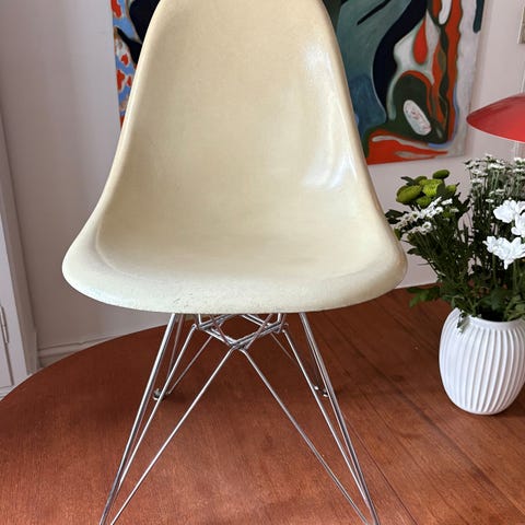 Eames skalstol. Skal repeteres da stellet er gået fra i den ene dur.