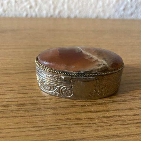 Smuk pilleæske, forgyldt og med onyx låg.