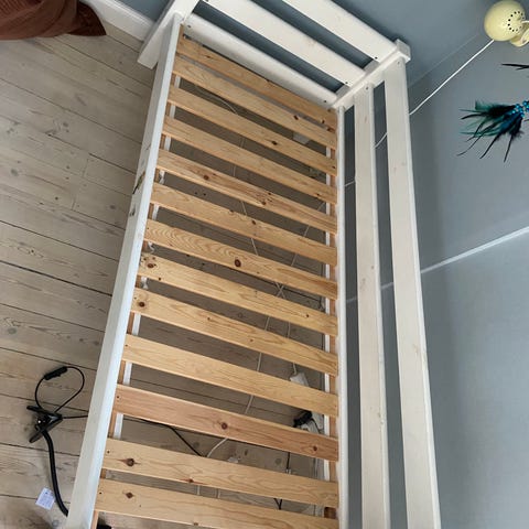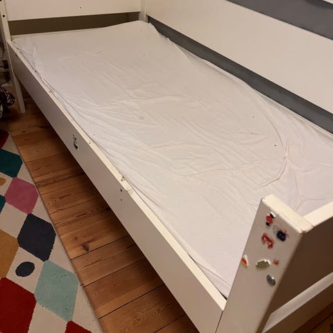 Sengen er fortsat fuldt funktionel men kunne trænge til en omgang maling.