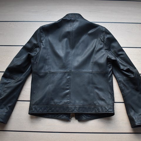 Jakke HUGO BOSS, sort, læder, Næsten som ny, Rigtig flot læderjakke i dejlig blød læder. Jakken fremstår som ny, kun brugt få gange. Jakken er foret, som også fremstår som ny. Lukkes med lynlås, 2 forlommer, 1 indvendig lomme.