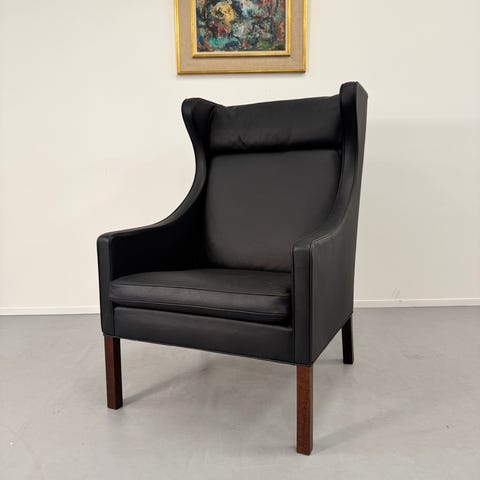 Børge Mogensen øreklapstol i sort læder, model 2204