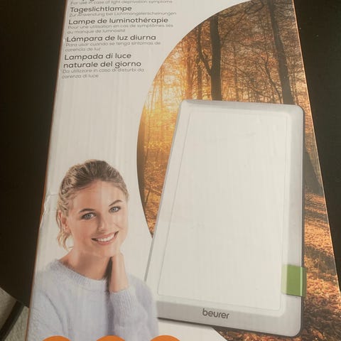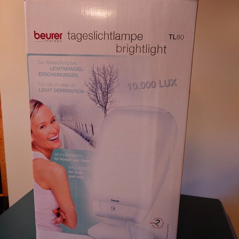 Beurer TL30 Tageslichtlampe Brightlight med justerbar skygge og lysstyrke op til 10.000 lux. Designet til brug ved lysmangel-symptomer, ideel til hjemme- eller rejsebrug.