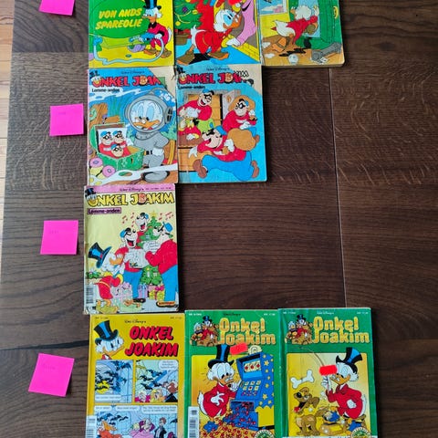 En stor bunke klassiske Anders And-hæfter med masser af Onkel Joakim, guldpenge og lomme-eventyr 🪙