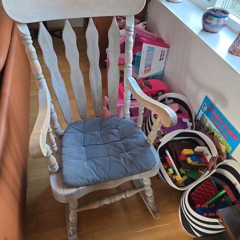 Gyngestol af ukendt mærke. Hvidmalet med afskalninger.