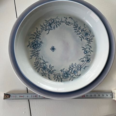 Godt brugt, god kvalitet. De fleste mærker indeni er overfladiske og kan poleres væk. En større afslag i emaljen. Se billede. 19 cm ø og 6 vm højt.