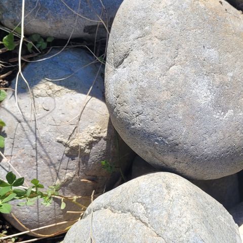 Natursten velegnet til have- og landskabsbrug. Stenene har forskellige størrelser og naturlige farver, hvilket gør dem anvendelige til dekoration og belægning i udendørsområder.