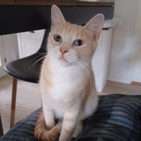 Hun er en rød hun kat (dem finder man ikke mange af) og er ca 2,5 år gammel.