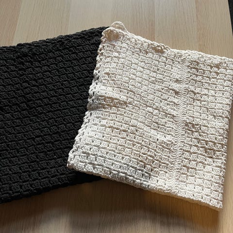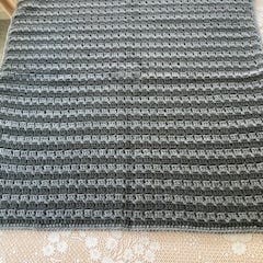 Hæklet, Babytæppe i Sort og gråt. 55 x 59 cm