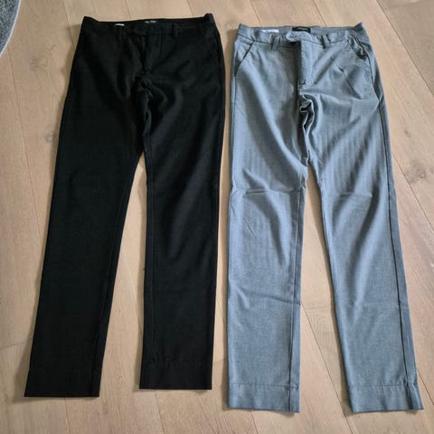 Smarte Jack and Jones Chino bukser i farverne sort og blå. Modellen er en slim Marco og i størrelsen 31/32. Fremstår i god stand. Koster 80 kr pr par.