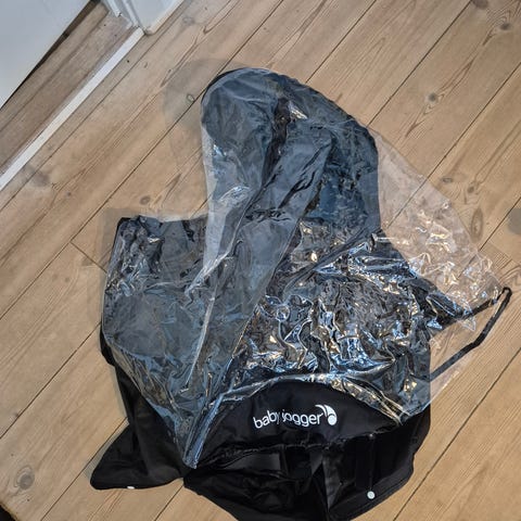 Kan bruges til city mini gt og gt2 double. Måske også til andre dobbeltvogne. Gennemsigtigt materiale med sorte kanter og logo. Designet til at beskytte mod regn og vind under brug af klapvogn.