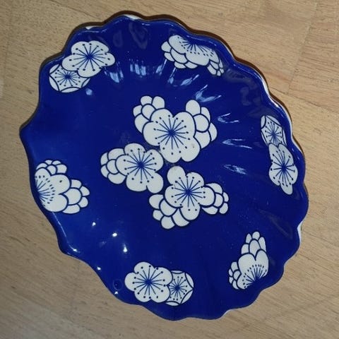 Zeller Keramik tallerken med blå bord, serie “petit rose” købes.