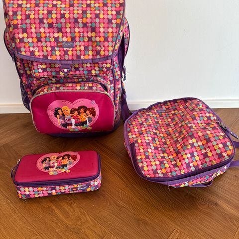 Rygsæk markedsført under LEGO Friends-mærket. Rygsækken har et farverigt design med sommerfugle, stjerner og hjerter på fronten. Den har en stor lynlåslomme foran og to justerbare skulderremme bagpå, i en kombination af lyseblå og lilla farver. Dimensionerne på rygsækken er 35x29 cm.