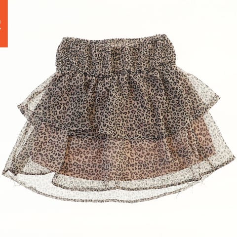 Brun nederdel med pink tyl underlag og detaljerede broderier af elefanter fortil. fra Hjorth. lille i størrelsen