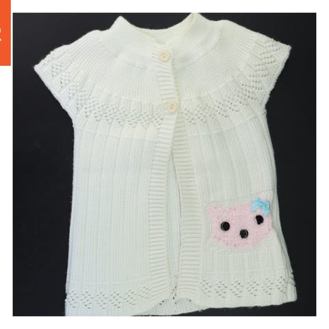 En orange strikket cardigan med åben design og dekorative mønstre. Cardiganen er lavet af let materiale, der er ideel til lag-på-lag styling.