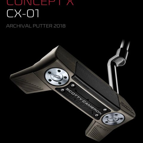 Scotty Cameron Phantom X 12 putter med unikt design og justerbare vægte. Putteren har et moderne udseende med sort og sølv finish og er egnet til præcisionsputning på golfbanen.