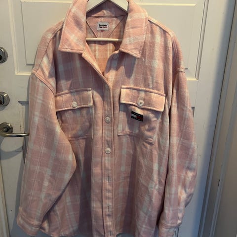 Skøn fin pink stribet skjorte fra Tommy Hilfiger , str 2 xl -str mærke udklippet , virkelig lækker !