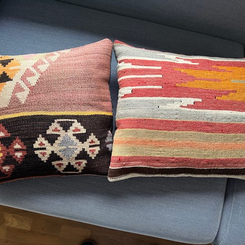 Sælger 2 store, flotte kilim/uld-puder (vintage). Købt via Lauritz (Tyskland).