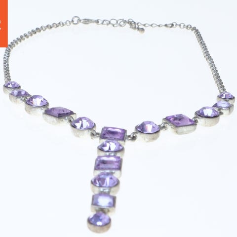 Tags: halskæde, sølv, smykke, lilla sten