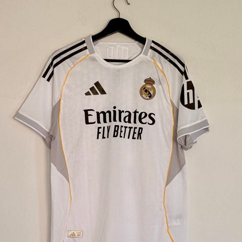 Classic white design with Adidas details and Emirates sponsor.