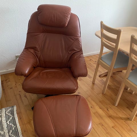 2 stk lænestole med rygge der kan lægges ned plus 1 skammel….god stand….. betaling ved afhentning