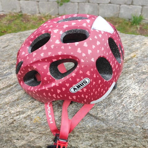 Cykelhjelm med blomstermotiv fra Abus (str. 28 cm)