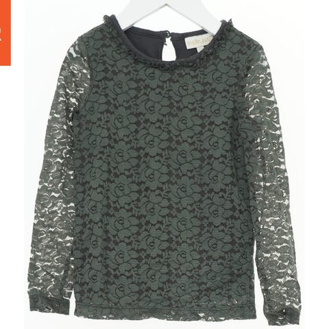 Denne bluse er lyserød og har korte pufærmer. Den har en trykt statement på bagsiden, hvor der står 'Together we grow' med en blomst under teksten. Som ny.