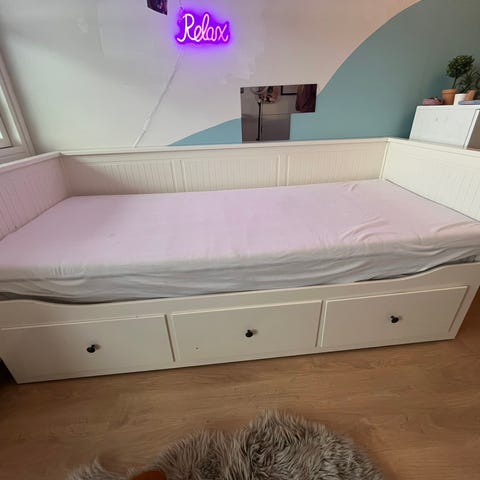 Hemnes Seng, hvid, med Lösnet Lameller. 140 x 200 cm.