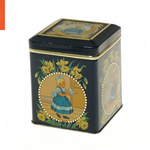 Vintage Irma Rund metaldåse med børneprint (str. 19 cm)