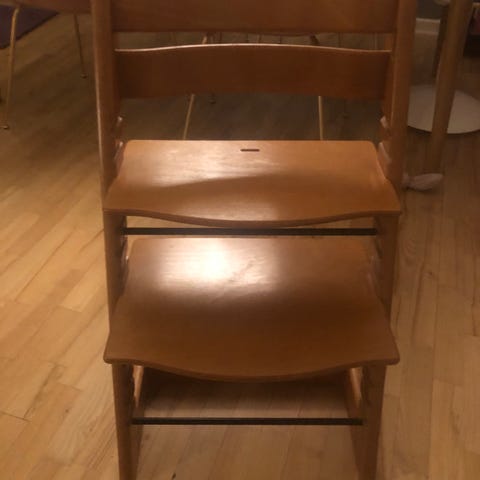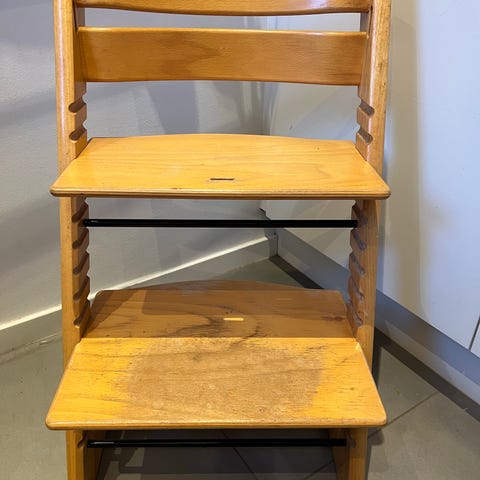 Stokke Højstol fremstillet i træ. Designet til børn med justerbar sæde- og fodstøtte for optimal komfort og støtte. Stolens materiale er træ, og den er velegnet til brug som børnestol ved spisebordet.