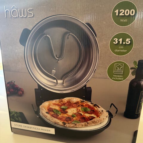 OBH Nordica 7310 pizzaovn i rød farve. Elektrisk ovn med 1200 watt effekt og 230V strømforsyning. Designet til at bage pizzaer og andre flade bagværk.